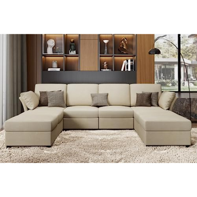 【Flexible & Versatile Sectional Sofa】Form into endless modular or re-arrange into any configuration. If you are fed up with the old combination, change couch flexibly or simply add more modules. 【Modern Minimalism Style】Convertible sofa equipped with streamlined edges and a clean silhouette present a sophisticated design, while minimalism and spacious seats welcome resting, and relaxation. 【Premium Comfort】27 inch ultra seat depth of modular sofa provides spacious sitting space. High-density sponge with cotton filled back pillow and hand pillow enables an exlusive comfort experience. 【Durable Chenille Fabric】Feeling tired of linen or chenille fabric? Chenille has the best of both worlds when it comes to comfort and look. Chenille on modular sectional is not only warm but soft to the touch. 【Simple Assembly】2 people can easily assemble the sofa within 20 minutes.8 PACKAGES may arrive separately within few days. Cushions are vacuum packed, need 7-9 days to fullly rebound.