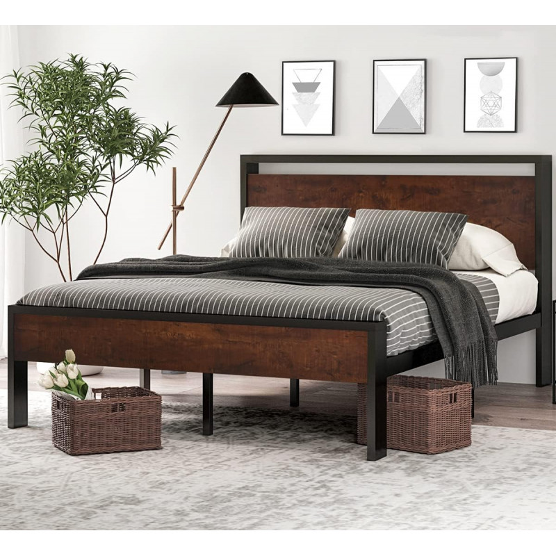 【Notice】The middle beam length of the full is 75.8'', and the queen & king's is 80.8''. When receiving a beam of the correct length but it cannot connect with the head or tail tightly, it is possible that the head bar or tail bar is installed incorrectly. Please make sure the label direction is "UP" and exposed, and check the wood board is on the correct side. If you encounter any difficulties with installation, please do not hesitate to contact us for the installation video. 【Solid & Durable】The method of welding platform structure and using fixed screws is adopted in the design. 12 strong Metal slats and 9 independent support legs can withstand up to 800 lbs capacity. 【Unique Design】The combination of rustic style headboard and footboard with retro frosted metal slats creates a strong industrial / rustic flair, adding an industrial and unique touch to your room. The headboard consists of a waterproof & scratchproof wood board. 【Noise Free】The non-slip strips hold the slats in place, and the unique rubber lock design helps to stabilize the bed frame and prevent noise. 【Under-bed Storage】A 14-inch platform features 12 inches of under-bed space perfect for storing extra odds and ends.