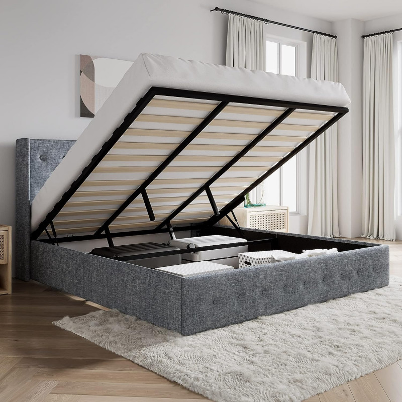 Underneath Storage & Space-Saving: Lift-up design allows large underneath space to get used. Suitable for space-eating and low usage-frequency belongings such as suitcases, storage bags, and boxes for out-season bedding and clothes, keep your belongings out of the landfill and keep rooms tidy
