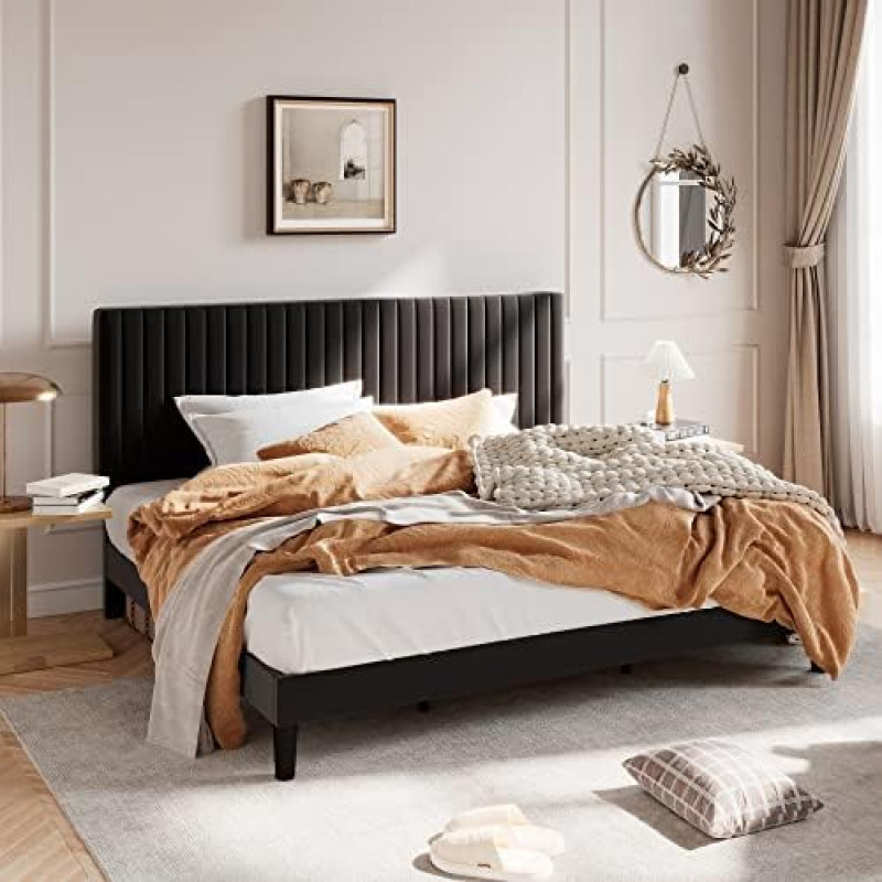 【HIGH-QUALITY FABRIC】 Vertical Channel tufted in velvet and fully padded, this bed frame will fit perfectly into your bedroom or teen's room. Skin-friendly, delicate touch!