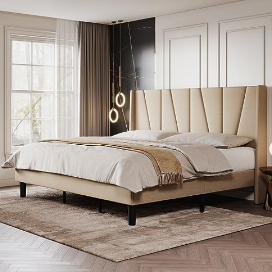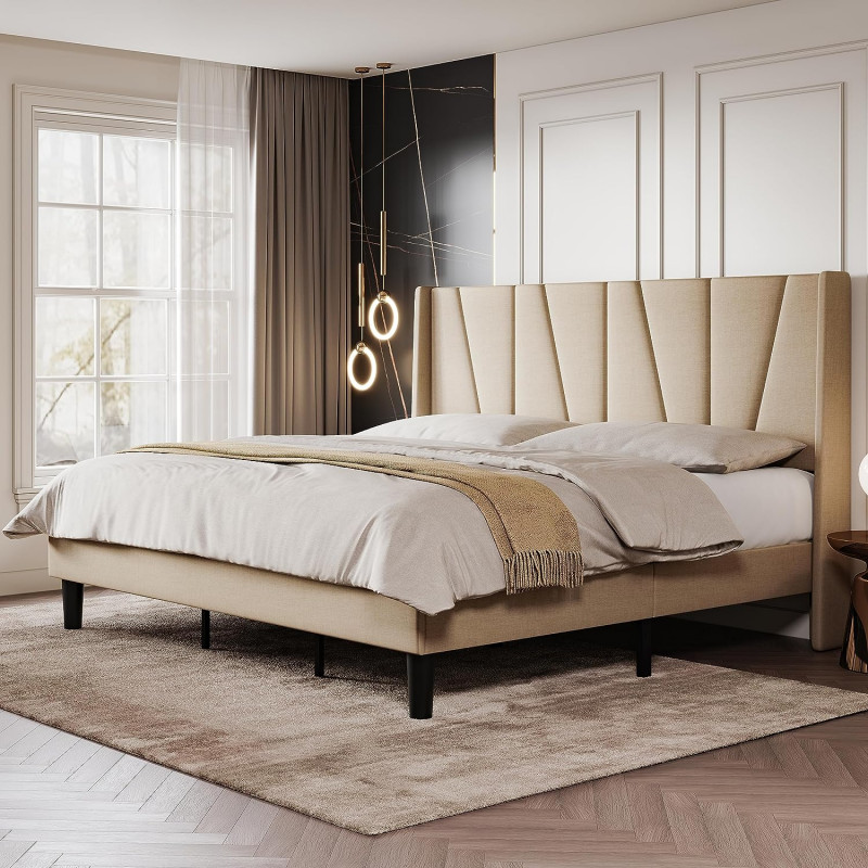 Elegant Wingback Geometric Headboard Bed: The geometric and wingback design introduces a simple and elegant element into the space. In addition, the wingback also enhances stability.