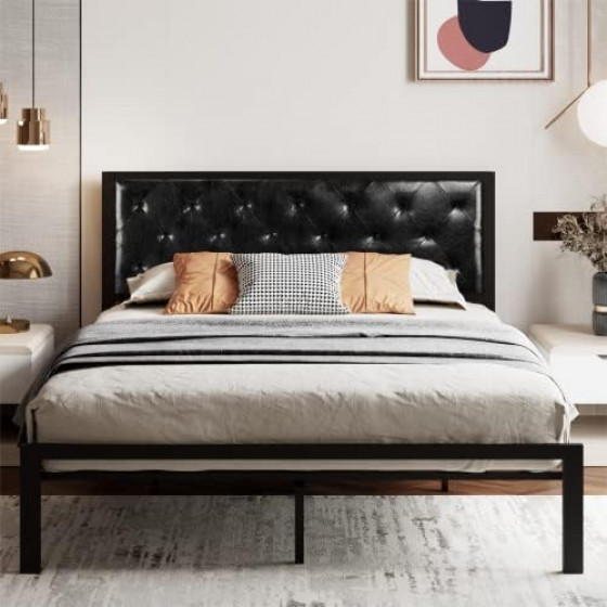 【Modern Design】The diamond stitched design of the headboard, combined with the faux leather upholstery, adds a touch of elegance and sophistication to any bedroom. Full and compact sponge filling provides high elastic support, soft and comfortable. 【Sturdy Support】Reinforced steel slats offer excellent support for various mattress types, eliminating the need for a box spring and saving money. With a maximum weight capacity of 1000 lbs, it's the perfect choice for all family members. 【Noise-Free Sleeping】 Designed with a mute bar, which prevents steel pipes from abrasion and reduces noise caused by friction. You won't hear any squeaking or creaking sounds when you get in or out of bed, ensuring a restful sleep. 【Storage Space】Provides 12.5 inches of clearance under the bed, offering ample space for storage. This is ideal for those who have limited space in their bedrooms or need extra storage, keeping the room clean and clutter-free. 【Easy Assembly】 Assembly is a breeze with the easy-to-follow instructions and upgraded plug-in design slats, no additional tools required. It only takes about 30 minutes for an adult to assemble.
