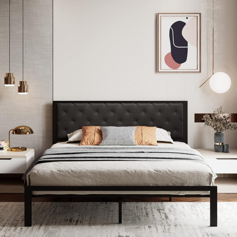 【Modern Design】The diamond stitched design of the headboard, combined with the faux leather upholstery, adds a touch of elegance and sophistication to any bedroom. Full and compact sponge filling provides high elastic support, soft and comfortable. 【Sturdy Support】Reinforced steel slats offer excellent support for various mattress types, eliminating the need for a box spring and saving money. With a maximum weight capacity of 1000 lbs, it's the perfect choice for all family members. 【Noise-Free Sleeping】 Designed with a mute bar, which prevents steel pipes from abrasion and reduces noise caused by friction. You won't hear any squeaking or creaking sounds when you get in or out of bed, ensuring a restful sleep. 【Storage Space】Provides 12.5 inches of clearance under the bed, offering ample space for storage. This is ideal for those who have limited space in their bedrooms or need extra storage, keeping the room clean and clutter-free. 【Easy Assembly】 Assembly is a breeze with the easy-to-follow instructions and upgraded plug-in design slats, no additional tools required. It only takes about 30 minutes for an adult to assemble.