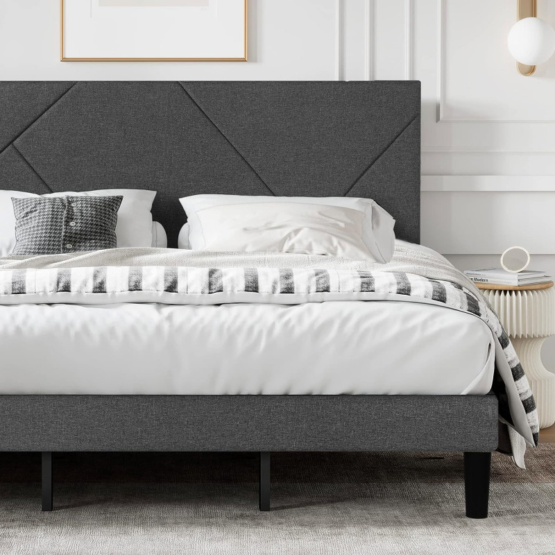 Versatile Style: The dark grey color and geometric headboard design make this bed frame a versatile option that can complement a range of decor styles, from modern to transitional and more.