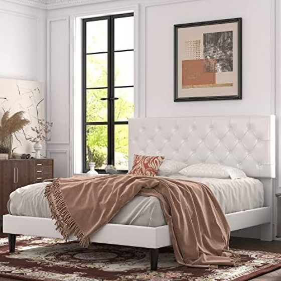 Timeless Typical:Button-tufted headboard designed to add elegance to a master suite or teeger's bedrooms,available in multiple shades so matching your existing decor is very simple. Great Quality: Interior '+' shape steel framework can hold up your mattress stably,which can support up to 800 lbs.No noise in movement. Box Spring Acceptable: Adjustable headboard provides an option to adjust the bed height.The box spring is acceptable for someone who loves to make the bed higher. Easy Assembly : Everything you need is efficiently packed into one box and shipped straight to your door, it normally takes a teeger one hour to assemble. Eva mute bar can prevent the noise generated by the friction between the metal frame and wooden slats, bid farewell to restless nights, and embrace the tranquility of uninterrupted sleep.