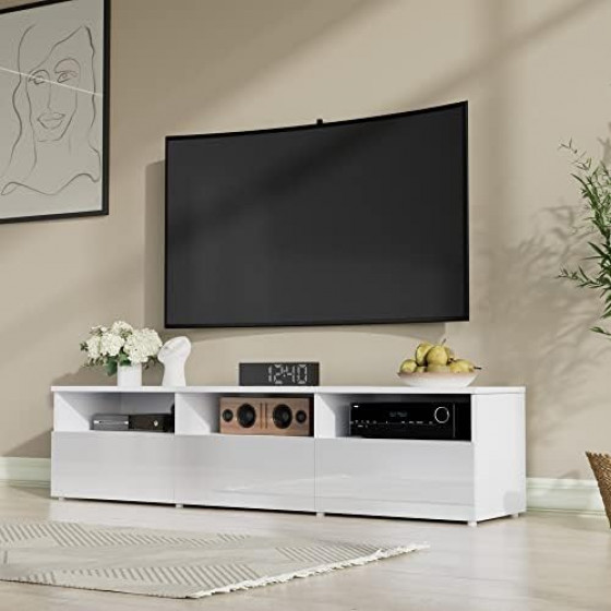 【High Gloss Modern Style】The TV Stand add a technological and modern touch to your home because it designed with the high glossy style. It customizes a unique viewing and gaming experience in your home. Besides, High Gloss Design makes it easier to clean.