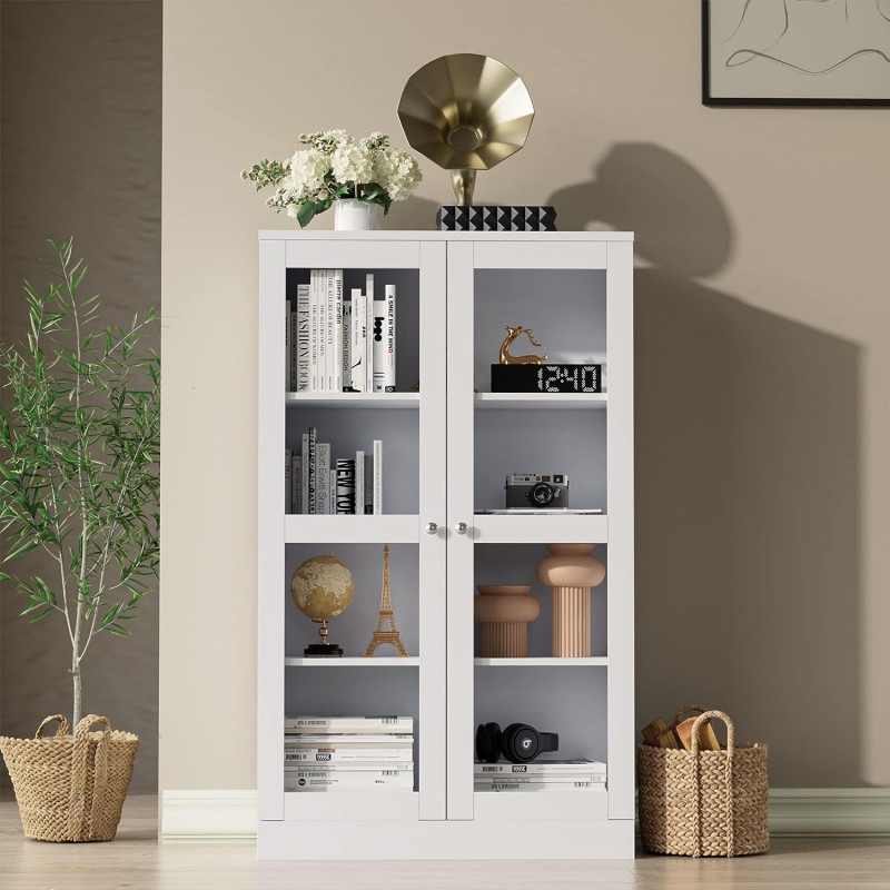 【Simple Modern Style】With unique Acrylic Doors, this display cabinet can add an elegent and modern touch to your home. Besides, the doors are enclosed by acrylic board, allowing you to better display your collectibles while keeping them dust-free. This cabinet can be used not only as a general storage cabinet but also as a file cabinet, display cabinet and bookcase, which can be placed in any corner of the home. 【Flexible storage space】There are 4 adjustable shelves in the pantry cabinet, which can adjust the height of the shelves up and down by 2.5 inches, you can get flexible storage space for different sizes of items, more convenient to use in daily life. 【Sturdy and Safe】Made of high quality Panel and metal hardware, which ensures the durability and solidity of the Pantry Cabinet. Additionally, for creating a safe environment for your family, this cabinet is designed with an anti-tip device so you don't have to worry about your family's safety anymore. 【CARB Certification】CARB Phase 2 compliant: National standard in the U.S. instituted by the California Air Resources Board (CARB) to reduce formaldehyde emissions. Our panel of the Display Cabinet certified by CARB with formaldehyde emission below 0.09ppm. Therefore, this Bookshelf is suitable for families with children and pets and has no negative effect on health. 【Easy Installation】According to the detailed manual, this Pantry Cabinet with storage can be easily integrated. Our Cozy Castle is a 365-day good companion for any problem. Any question? Please do not hesitate to let us know and solve them.