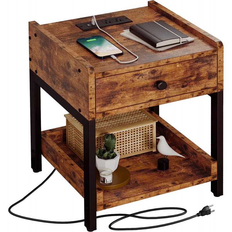 End Table with Drawer: The hidden storage drawer slides in and out smoothly, and 2 shelves with baffles can protect items from falling. Charging Station At Your Fingertips-2 Standard Plug Outlets & 2 USB Ports with Cable Management 4.9ft long power supply cord. Make charging and common small items within easy reach. Industrial Nightstand: The cute table is a little piece of art to have at home. You can match it with LIKIMIO bed frames of the same color to decorate your bedroom. It has kind of a mild industrial look to it without being overly trendy. Sturdy and Stable: An industrial end table made with high-quality MDF boards and a sturdy metal frame, which also works as a side table and bedside table. Easy to Assemble: side table packaged well and easy to put together. Instructions were straightforward and parts all labeled and walked you through the entire build. EXCELLENT SERVICE-We provide 12 months free parts replacement, if you find any problem with the end table, please don't hesitate to contact us, we'll solve your problem within 24 hours