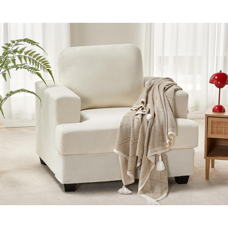 【Fluffy Bouclé Fabric】Upholstered in cloud-like bouclé fabric, creamy couch offers a soft touch while providing a fuzzy texture. Bouclé fabric decorates your home with warmth and calmness.