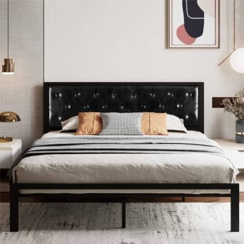 【Modern Design】The diamond stitched design of the headboard, combined with the faux leather upholstery, adds a touch of elegance and sophistication to any bedroom. Full and compact sponge filling provides high elastic support, soft and comfortable. 【Sturdy Support】Reinforced steel slats offer excellent support for various mattress types, eliminating the need for a box spring and saving money. With a maximum weight capacity of 1000 lbs, it's the perfect choice for all family members. 【Noise-Free Sleeping】 Designed with a mute bar, which prevents steel pipes from abrasion and reduces noise caused by friction. You won't hear any squeaking or creaking sounds when you get in or out of bed, ensuring a restful sleep. 【Storage Space】Provides 12.5 inches of clearance under the bed, offering ample space for storage. This is ideal for those who have limited space in their bedrooms or need extra storage, keeping the room clean and clutter-free. 【Easy Assembly】 Assembly is a breeze with the easy-to-follow instructions and upgraded plug-in design slats, no additional tools required. It only takes about 30 minutes for an adult to assemble.