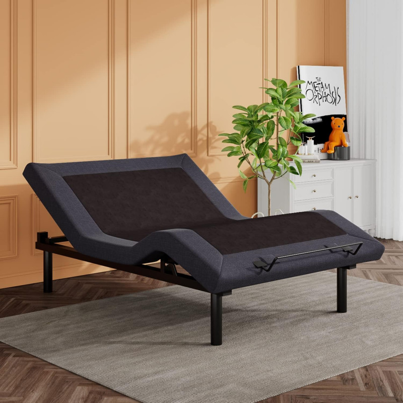 Trustworthy Powerful Motor: The upgraded motor adopts thick aluminum alloy tube, metal construction for good load capacity and durability, 550 lb lift capacity for head and 350 lb for foot. Independent Head and Foot Incline: Head 0-65°and foot 0-35°get to choose your ideal position; adjustable bed frame offer you optimal comfort,reading and work on bed becoming easier and comfortable; also help alleviate joint pain, relieve snoring, better digestion. Wireless Remote Control: Clear icon on wireless remote control makes operation easy, which allows you to simply adjust your comfortable sleep position and can be put in the side bag when not in use. Sturdy Metal Support: This frame is made of high quality steel,strongly supporting mattress and bedding, extraordinary supporting ability enables it to carry 900 lbs. Mattress Compatibility: Our bed base is highly compatible with most mattresses and on the market, memory foam, latex, hybrid or gel foam mattresses. The retainer bar prevents mattress slips by keeping it in place.