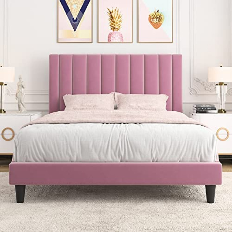 【Modern & Elegant】: The bed's headboard featuring a modern vertical channel design makes a statement in any bedroom space. And luxurious plush velvet not only adds softness but also completes your contemporary aesthetic. Its foam-padded upholstery offers supportive comfort while relaxing.