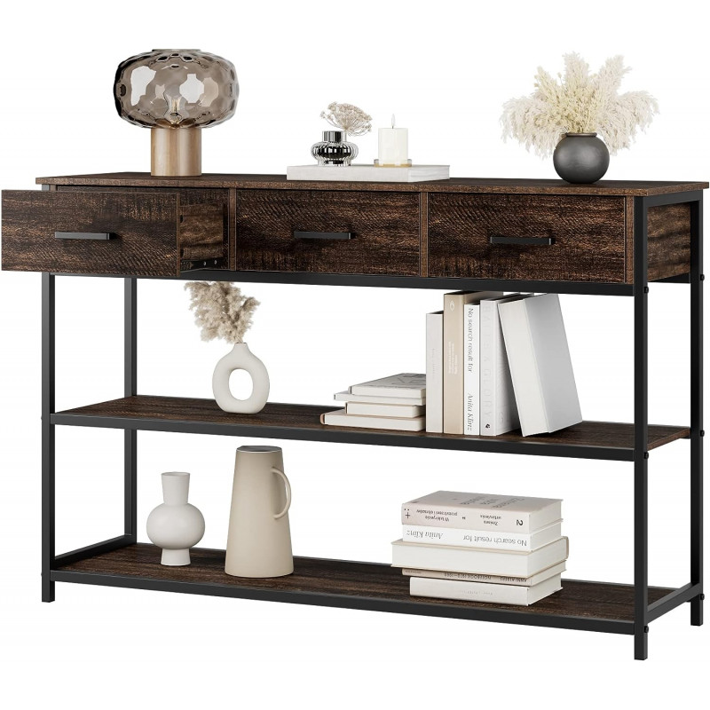 LARGE STORAGE SPACE: The console table is designed with 3 spacious drawers and 2 bottom shelves, for organizing your daily essentials.the bottom shelves of the tabel can keep your books, household decors, and collections well and 3 spacious drawers are convenient for you to store your private items.The spacious table top can be used to hold your plants, vases and picture frames. Tabletop size: 43.3 "Lx13.4 "W.