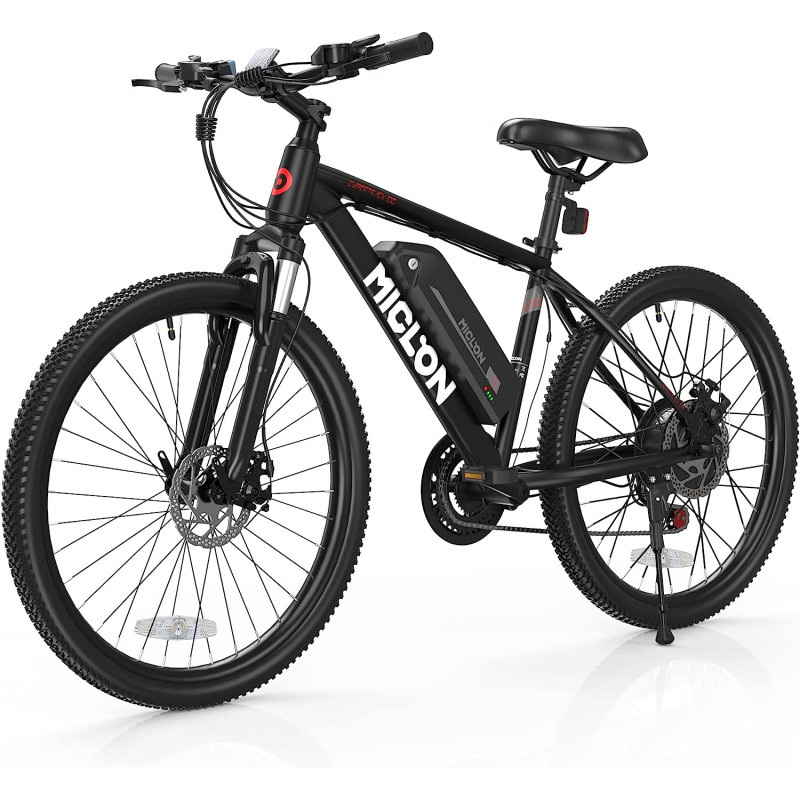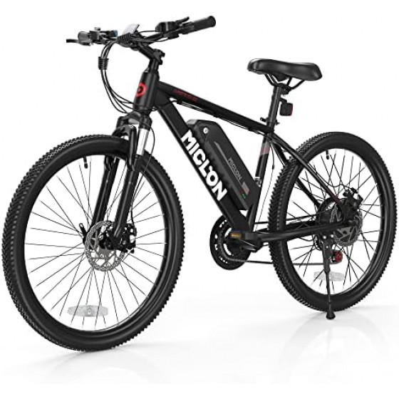 350W BAFANG MOTOR : 26'' electric bike for adults is equipped with a brushless powerful BAFANG MOTOR, which provides enough power, max speed is up to 20mph. BAFANG motor as one of the top-level e-bike motors has higher output efficiency and requires less maintenance compared with other normal motors 2X FASTER CHARGE: Featured with a 3H fast charging function, the UL Listed 36V/10.4ah lithium-ion battery allows you to wait only a little charging time before starting the next journey. Its large capacity also ensures a long range of 30-37 miles. And the battery is removable and lockable, convenient to charge on/off the bike BIKE FOR COMFORT: The well-designed, high-strength front suspension fork can effectively absorb shocks during riding, help to better control the direction, and bring a more comfortable riding experience. No matter what the terrain is, you will feel less fatigue and enjoy smoother riding BIKE FOR SAFETY: Aircraft-grade Aluminum Alloy frame for enhanced solidity and durability, anti-slip tires for a better grip on rainy days. The disc brakes provide greater stopping power, allowing for precise and instant braking even in wet weather. IPX4 water-resistant battery has no fear of light rain WORRY-FREE ASSEMBLY & SUPPORT: This electric mountain bike comes 85% pre-assembled. Some simple parts are left for you to enjoy hands-on fun. A video guide is available on the product page. All quality problems are ensured for the first year. You are also covered by Miclon lifetime technical suppor