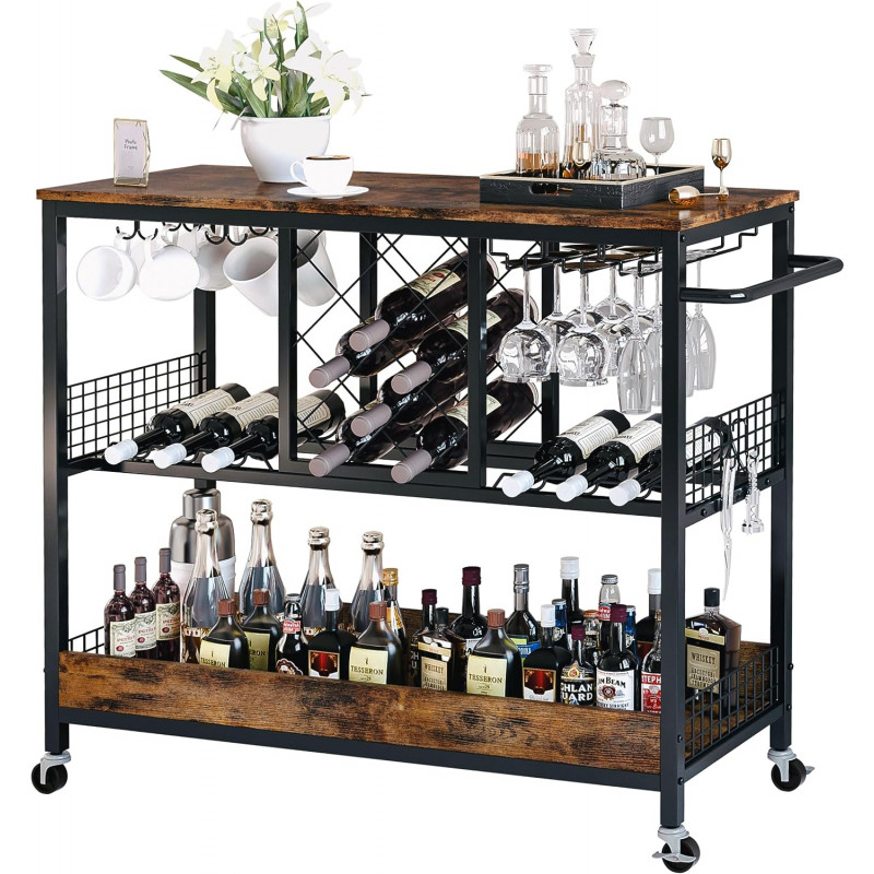 Made of high grade MDF board and durable metal, which ensures the stability of the wine rack table and its use for many years.The bar cart with wine rack is sturdy and durable with sufficient strength and efficiency.