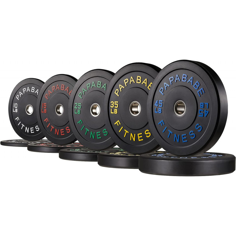 【Upgrade color codes 】Raised text helps to find bumper plates set 260 pounds quickly and look nicer than a pure black one. The raised lip also protects the printed letter from wearing off.