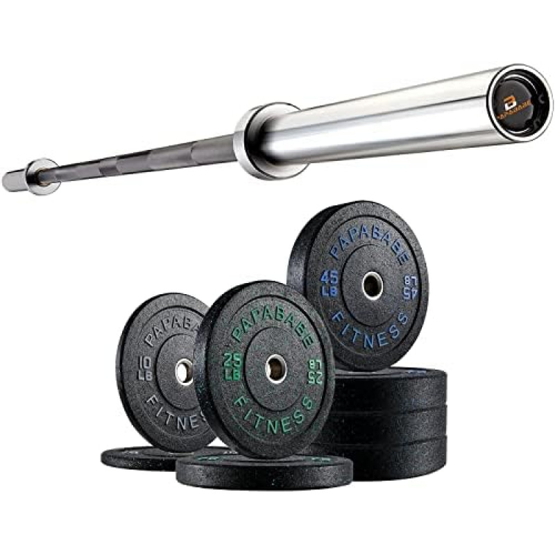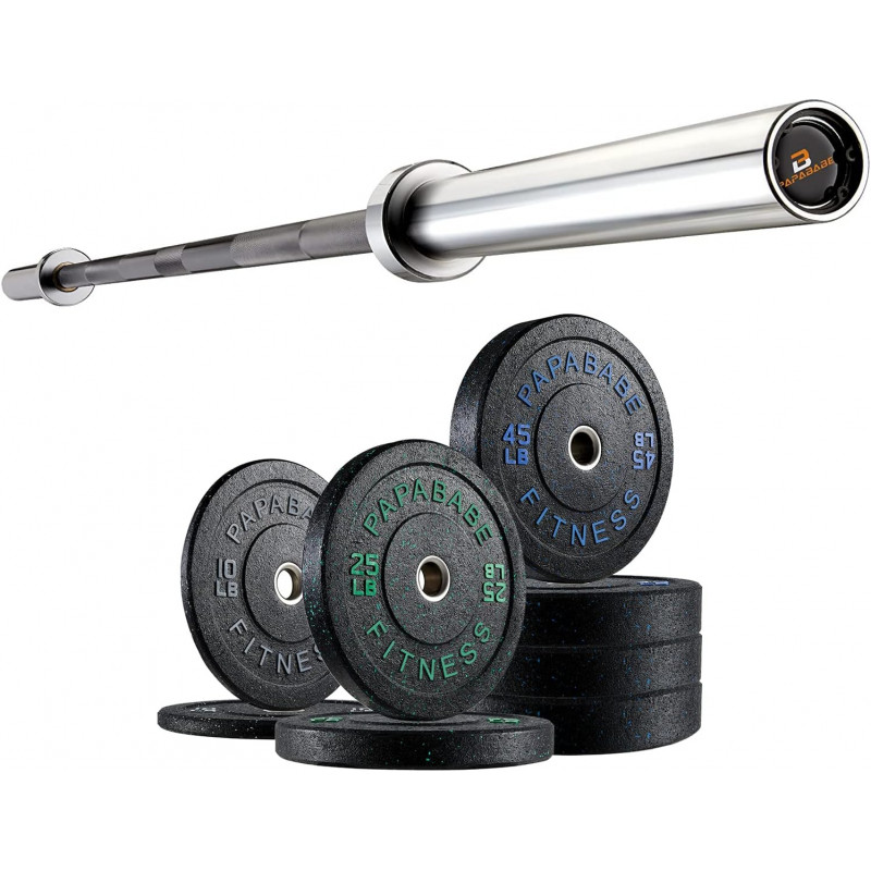 【250 LB Set + Zinc Plated Barell】Including 2x10lb, 2x25lb and 4x45lb hi bounce bumper plates and 1 Olympic Barbell. (5 packages)