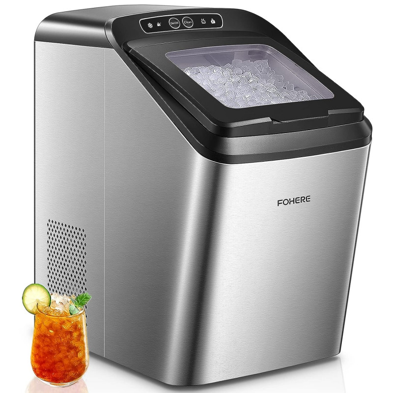 Quality Nugget Ice At Home: FOHERE nugget ice maker provides restaurant-quality, addictively chewable nugget ice in your kitchen, home, or office instead of you driving to chain stores. The softer airy pebble ice won't affect your dental health. Soft pellet ice can fill the entire glass and cool drinks faster, absorbing drinks' flavor, and bringing fantastic tastes.