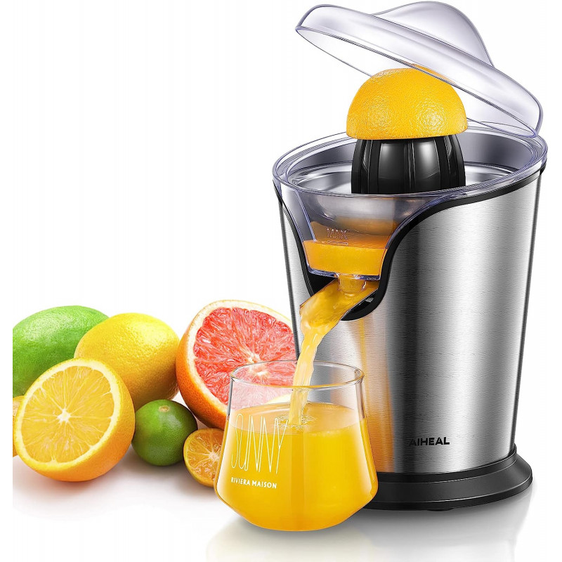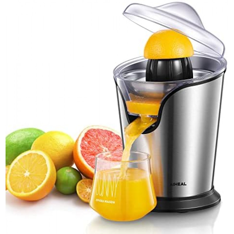 【Stainless Steel Materials & Quiet Motor】- Aiheal Citrus press juicer chooses the professional brushed stainless steel as the material for its body, which brings additional use life. The juicer has 85W motor power, but it only has 22+ decibels noise which make it possible to use at any time/place.