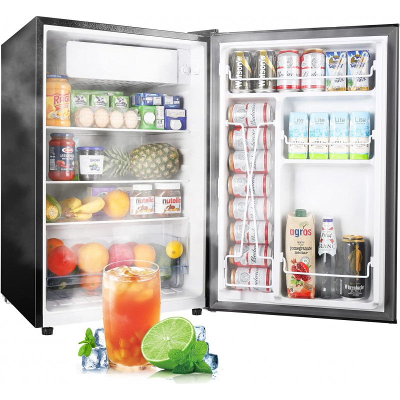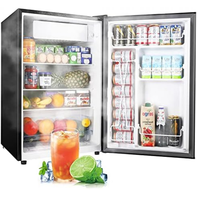 Compact yet Capacious: This unit offers generous storage room of 0.5 Cu.ft freezer and 4.0 Cu.ft fridge. The dimension measures 20.86"(D)*20.59(W)"*32.48(H)", perfect size to fit in your apartment, kitchen, living room and dorm.