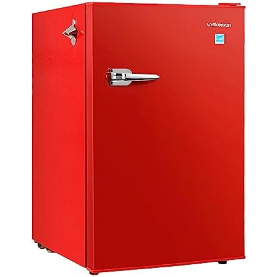 Capacity & Convenient: This compact retro fridge measures 20.59" *20.86" *32.48" (W*D*H) and has 4.5 Cu.ft(127.4L) capacity, which is space efficient. The side bottle opener makes it a breeze to open bottles.