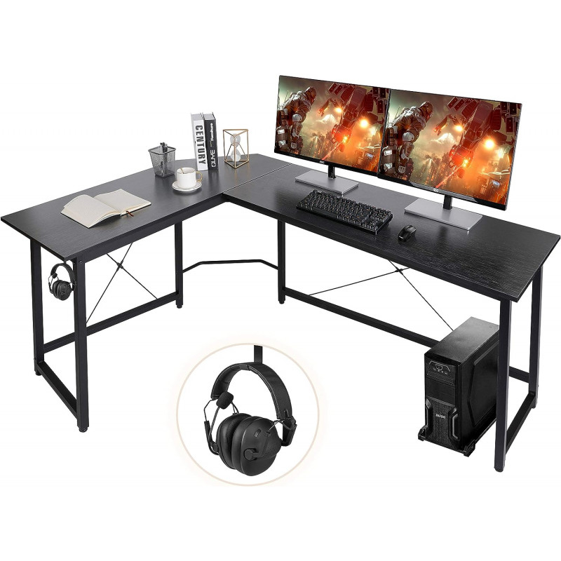STURDY FRAME&450LBS MAX LOAD TABLETOP: Modern wooden desk is constructed with thick metal frames and extra metal brackets to ensure stability. The desktop is made of waterproof and anti-scratch particle board, which is easy to clean. Spacious table top will hold item up to 450lbs. DURABLE&ADJUSTABLE: L-shaped desk includes adjustable leveling studs to keep the desk stable on uneven floors. while the bottom shelf is designed to accommodate a computer case. SPACIOUS SPACE ON&UNDER DESK : Wide L-shaped desktop offers plenty of room to accommodate multiple computers, laptops, and other items(at least 3). Bottom space provides a comfortable resting area for your legs and allows for stretching during long work sessions. L-SHAPED CORNER DESIGN: Corner Gaming Desk features a sleek wide desktop with a storage shelf, providing ample surface space for writing and computer work. Corner design makes it accomadates to any place in your house. Easy to Assemble & All Tools Included: Sturdy Writing Desk comes with a detailed instruction manual that clearly shows each assembly step. All the necessary assembly tools are included in the package, making the setup process convenient and hassle-free.