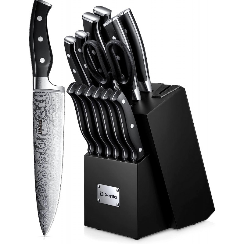 Premium and Sharp Kitchen Knife Set: The forged high-carbon stainless steel knives are super sharp, and heavy enough to tackle tough, fibrous vegetables such as butternut squash. The unique blades pattern make it tarnish-resistant and rust-resistant.