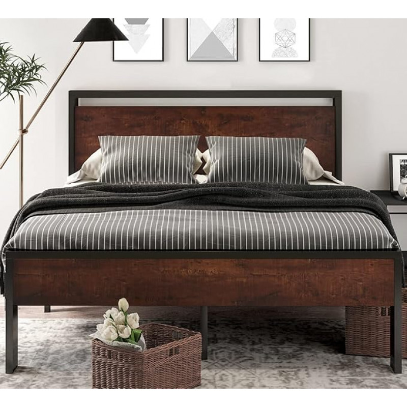 【Unique Design】The rustic headboard and footboard are combined with vintage frosted metal slats to create a strong industrial/rustic style, adding an industrial and unique touch to your room. The headboard is composed of waterproof and scratch-resistant wood boards.